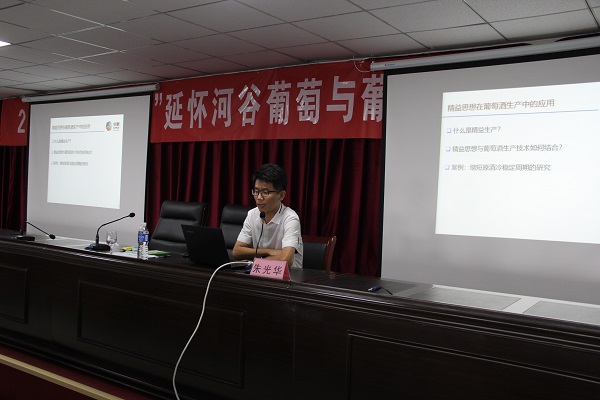 2018年8月21日、22日,为进一步推进“院镇共建”工程,122cc太阳集成游戏官方网站122cc太阳集成游戏官方网站党总支与怀来县委组织部在县委党校联合举办了“2018年延怀河谷葡萄与葡萄酒技术培训班”。怀来县委组织部常务副部长赵东升,涿鹿县委组织部副部长李旭东,怀来县委组织部部务会成员王孝国,怀来县高层次人才服务中心主任、人才科科长李宏杰,学院党总支书记党登峰,酿酒工程系系主任、中国酒业协会葡萄酒技术委员会副主任委员、中国农学会葡萄分会副理事长李德美副教授,以及延怀涿(延庆、怀来、涿鹿)三地葡萄及葡萄酒相关企业技术人员共计60余人出席了培训班开班典礼。