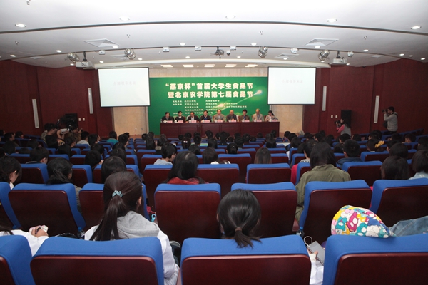 为了提高同学们实践动手能力,激发创新热情,10月22日上午,“燕京杯”首届大学生食品节暨122cc太阳集成游戏官方网站第七届食品节开幕式在122cc太阳集成游戏官方网站图书馆报告厅隆重举行。北京市科协副主席田文,122cc太阳集成游戏官方网站副校长范双喜,北京食品科学研究院院长王守伟、北京稻香村食品有限公司常务副总经理池向东、天津商业大学生物技术与食品科学学院院长张坤生、122cc太阳集成游戏官方网站院长仝其根等领导老师在主席台就座。京津地区和内蒙古自治区12所高校的老师和学生代表,学校各职能部门领导、122cc太阳集成游戏官方网站全体教师参加了开幕式,开幕式由北京食品学会常务副理事长徐开生教授主持。