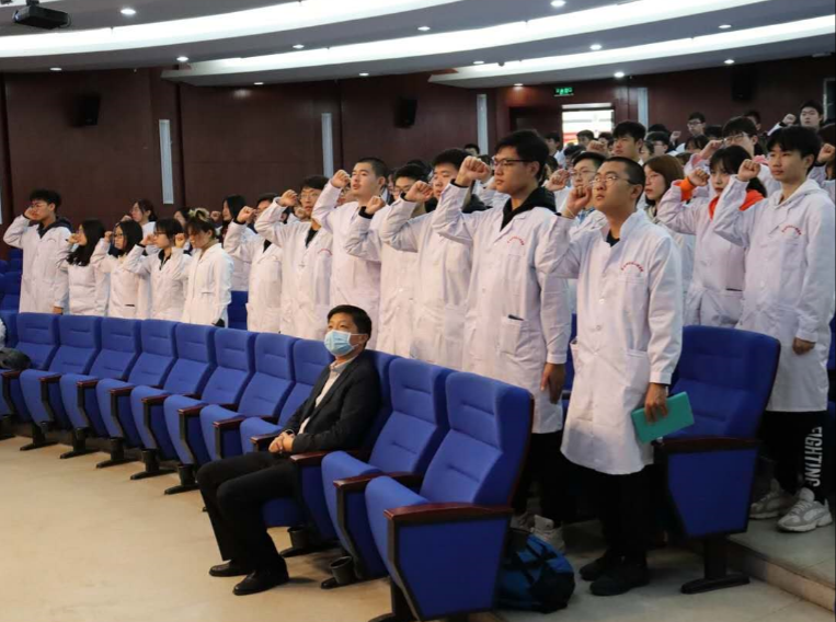 首先由新入职的教师李宏亮带领全体新生进行了食品人入行宣誓。新生们穿着整洁的实验服,怀着一颗炙热的心,精神饱满的大声宣誓。宣誓仪式代表着新生们已肩负起作为食品人的责任,并且责任会伴着他们的成长。他们将是未来食品行业一颗颗冉冉升起的新星,怀揣着宣誓时的热忱,在食品行业中奉献自己,用自己的专业知识为食品科学做出贡献。