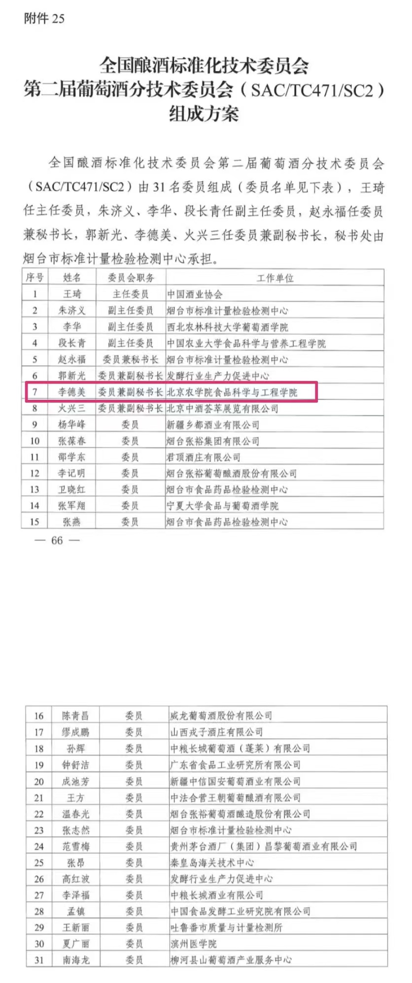 日前,《国家标准化管理委员会关于批准全国电压电流等级和频率标准化技术委员会等27个技术委员会换届的公告》(2022年第21号)发布。全国酿酒标准化技术委员会第二届葡萄酒分技术委员会(SAC/TC471/SC2)正式成立,该委员会由31名委员组成。122cc太阳集成游戏官方网站酿酒工程系主任李德美任委员兼副秘书长。