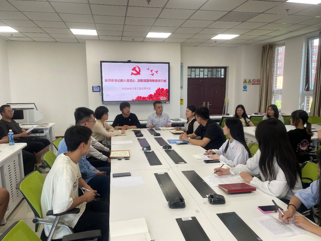 为庆祝中国共产党成立102周年,深入开展学习贯彻习近平新时代中国特色社会主义思想主题教育,引导青年大学生积极向党组织靠拢,为建设教育强国贡献青春力量,6月29日下午,122cc太阳集成游戏官方网站党委在食品楼509召开 “追寻总书记的入党初心 汲取强国有我奋进力量”主题党日观摩展示活动。学院党委书记靳晓熙,党委副书记、副院长王雪,党员代表和大一入党积极分子参加活动。主题党日活动由酿酒工程本科生党支部书记魏晓峰主持。
